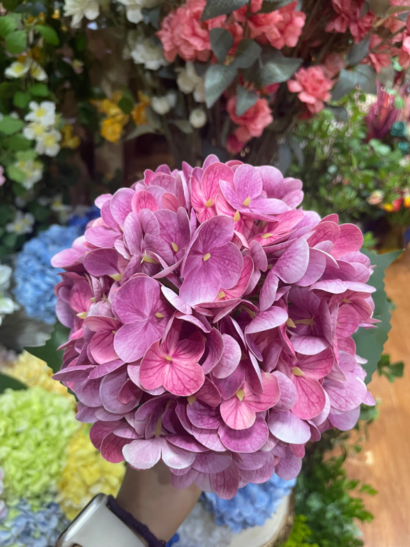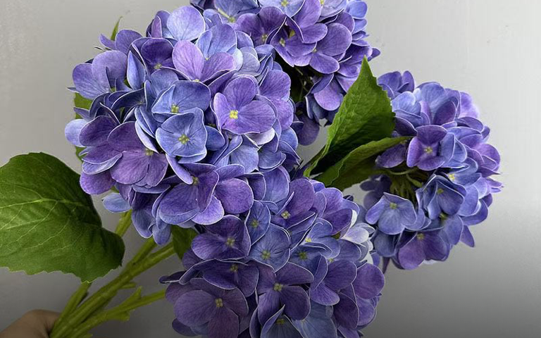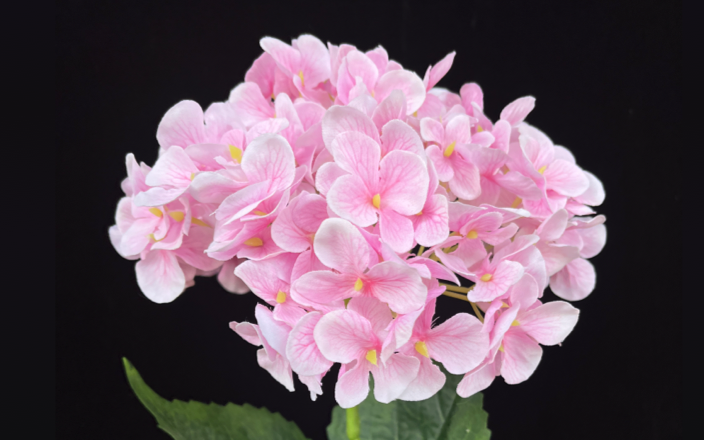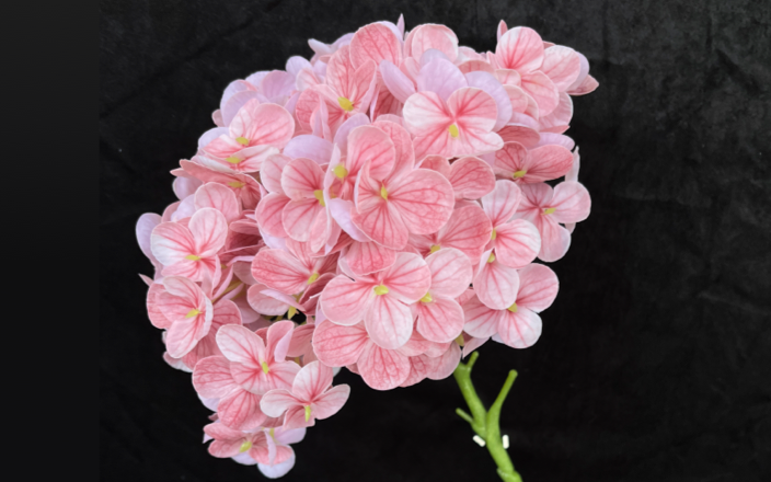 杆子长度、粗细适当的仿真花更便于花艺师在插花过程中做出层次,常用绣球杆子长度为30cm~60cm。