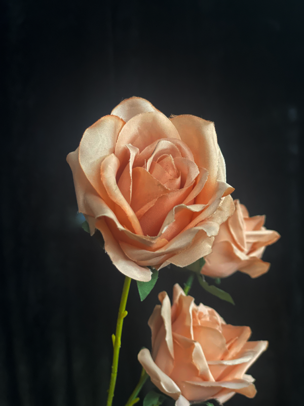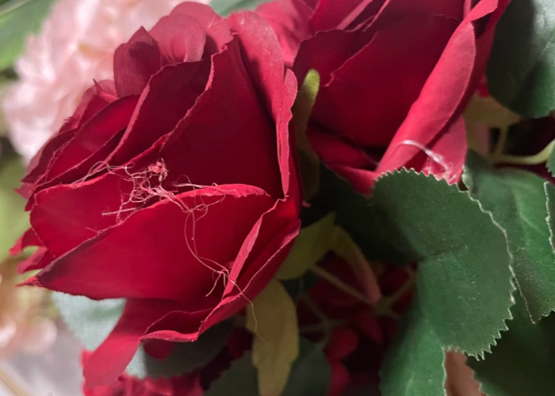 常见的布艺仿真花,花瓣由绢布制成